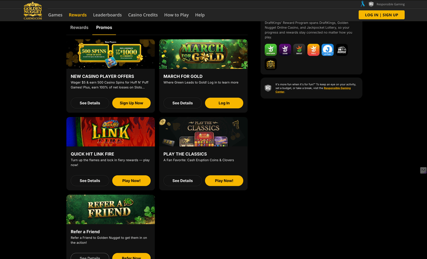 Big depositors may hit the bonus cap quickly. Rewards points from Golden Nugget’s loyalty program are earned alongside the bonus, giving extra small perks for regular play.